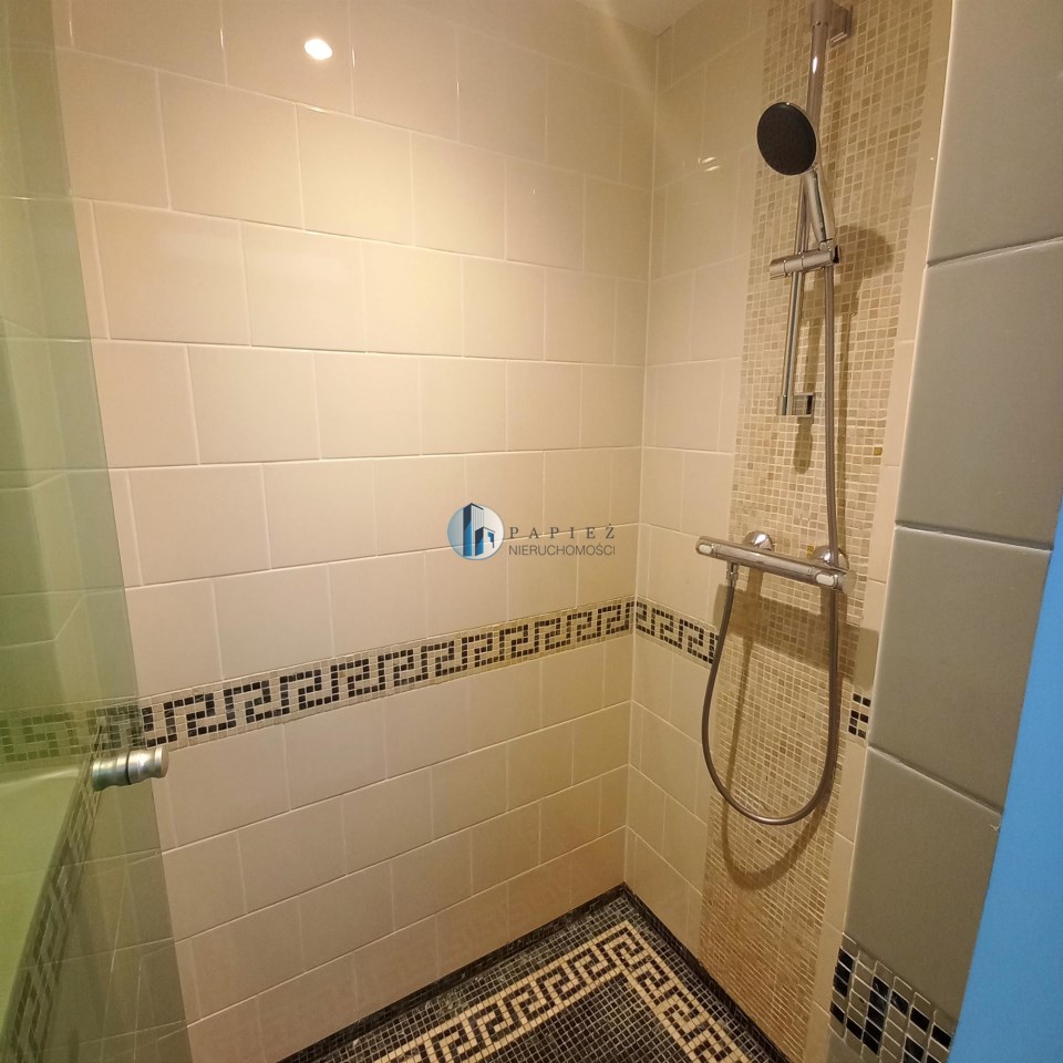 Na podłodze piękny dąb oraz gres.