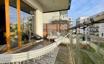 Do mieszkania przynależy duży, wygodny taras (ponad 10 m2), idealny do wypoczynku, z dużą prywatnością - brak okien sąsiadów naprzeciwko.