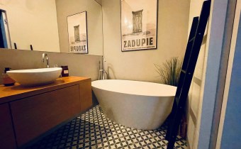 - dwie łazienki (jedna z kabiną prysznicową a druga z wanną)