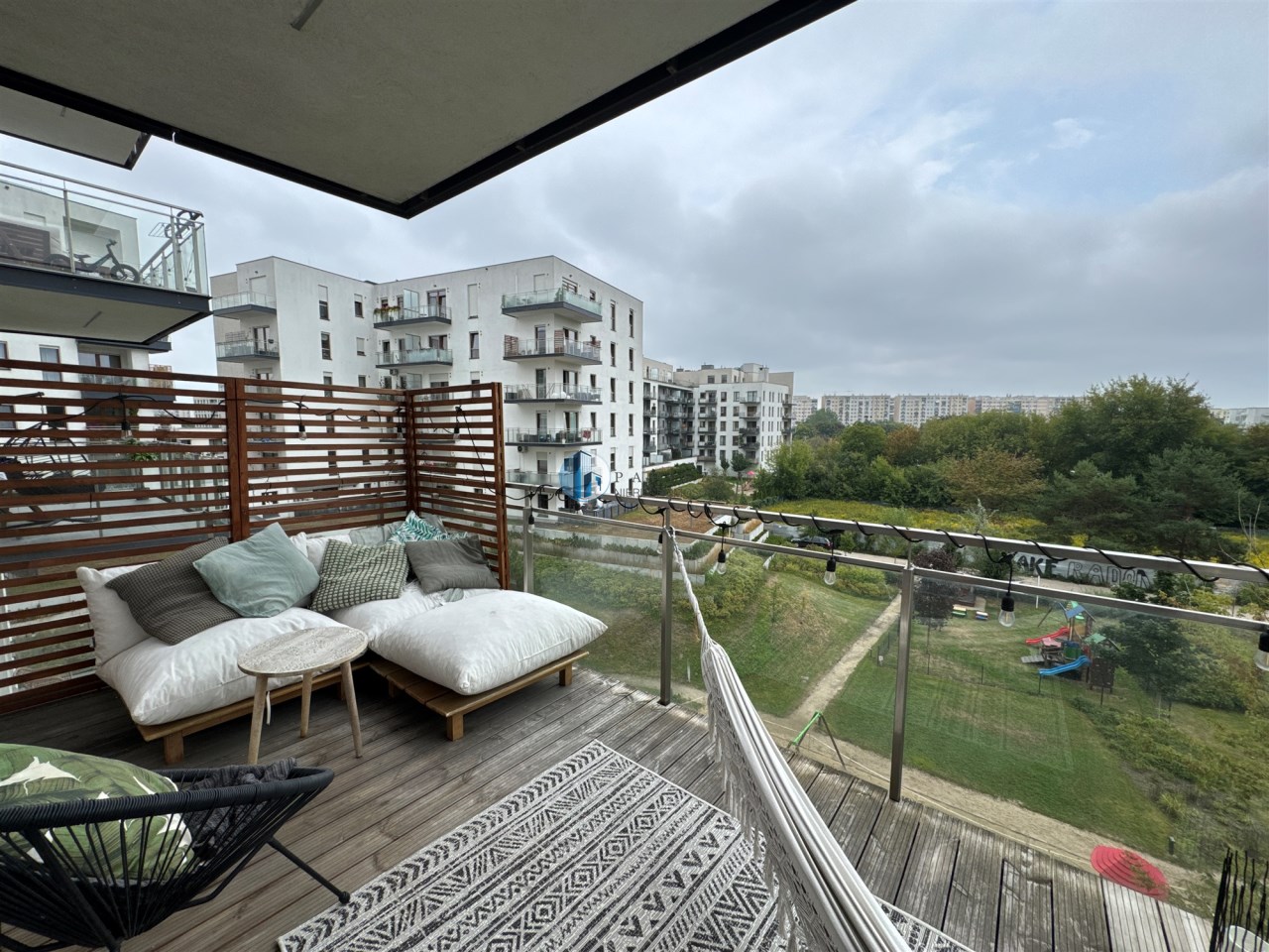 Do mieszkania przynależy duży, wygodny taras (ponad 10 m2), idealny do wypoczynku, z dużą prywatnością - brak okien sąsiadów naprzeciwko.