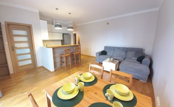 Do mniejszego pokoju wchodzi się z salonu, kuchnia otwarta na salon. Sypialnia z osobnym wejściem z przedpokoju.