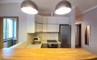 Wymienione instalacje i rury. Bardzo ładne podłogi (deska drewniana). Kuchnia całkowicie wyposażona i umeblowana (zmywarka, piekarnik, lodówka, płyta). W mieszkaniu znajduje się też