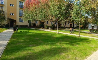 Widok z okien na na przestrzeń miedzy budynkami (nikt nie zagląda w okna). Ładnie zagospodarowane podwórze.